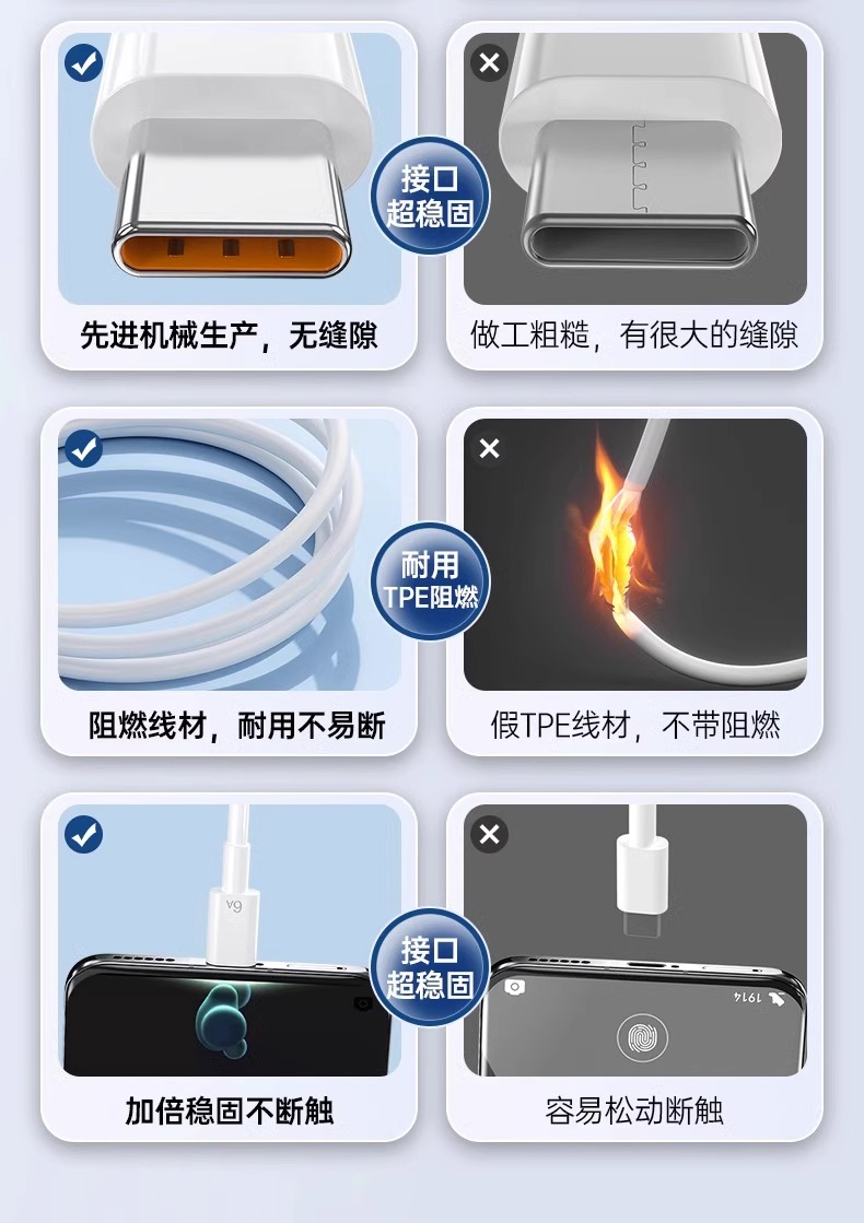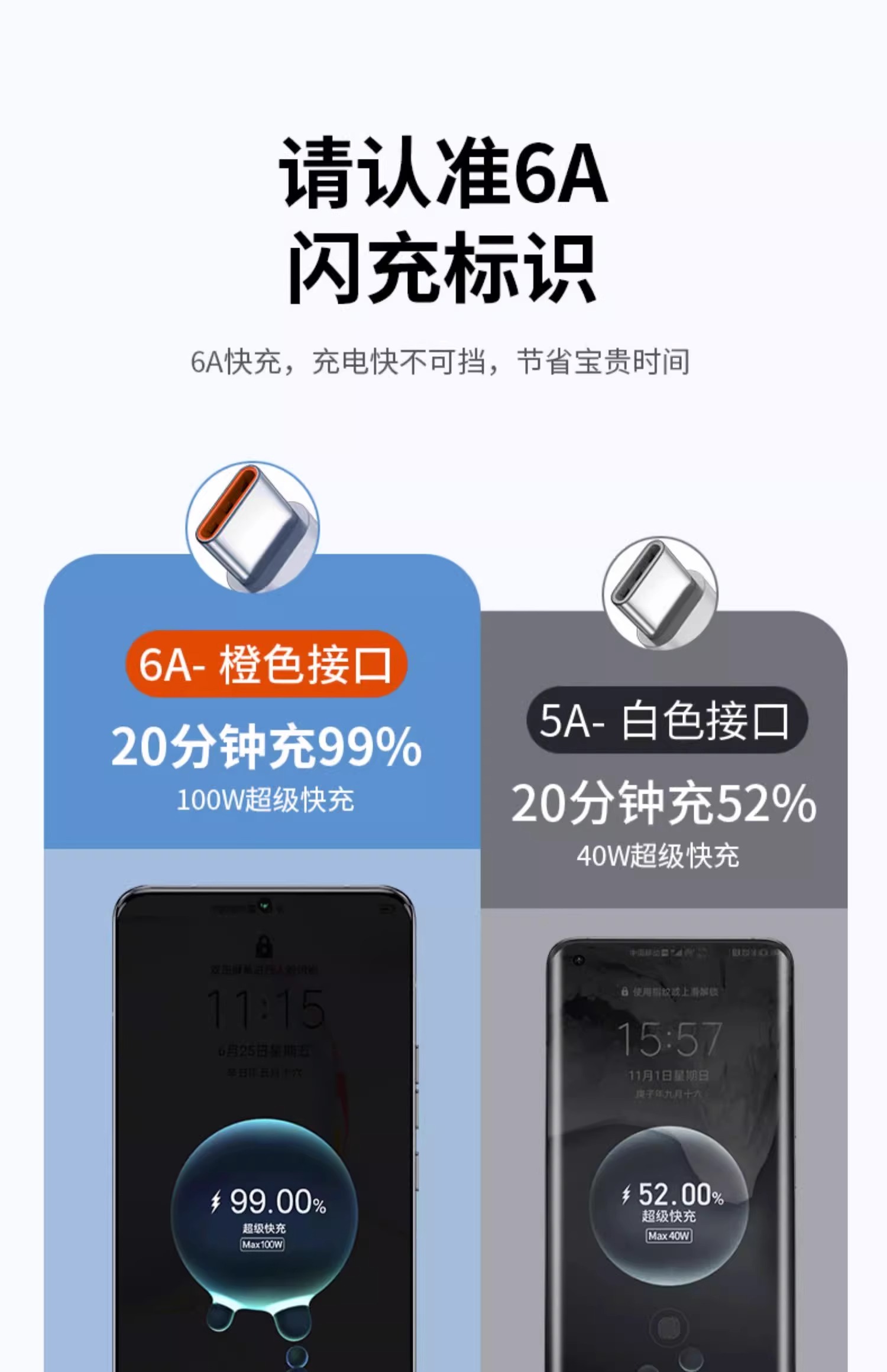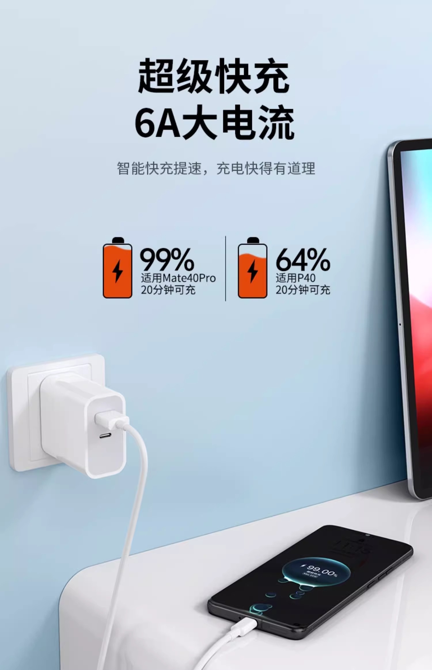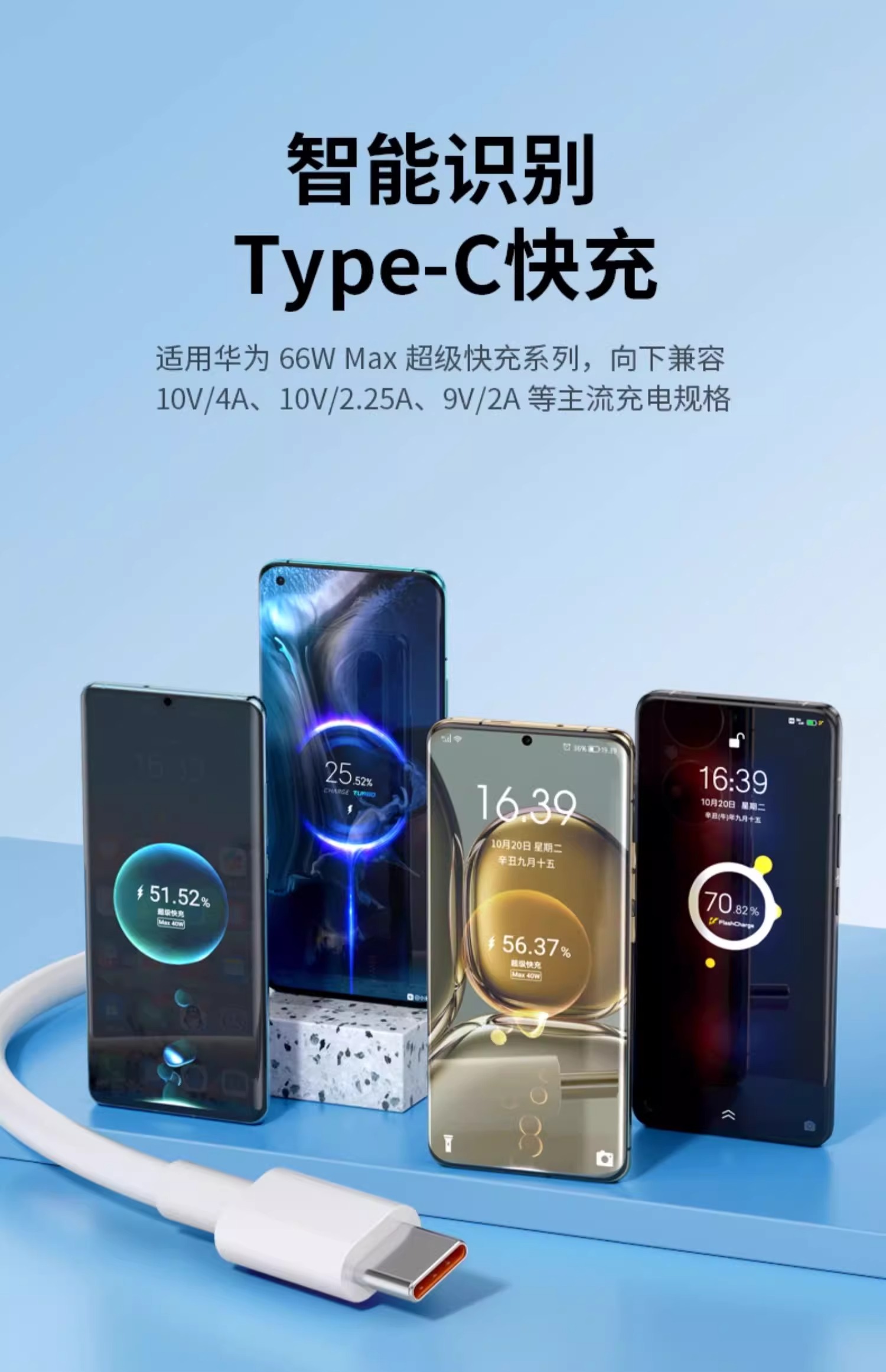 2-Meter Genuine 6A Super Fast Charging Type-C Data Cable Is Compatible With 66W Huawei Mate60/P70 Honor Charging Cables