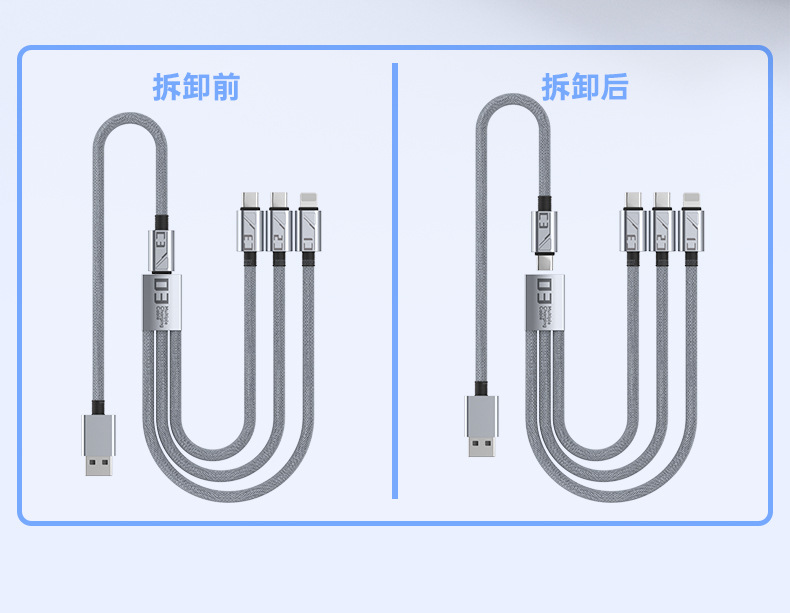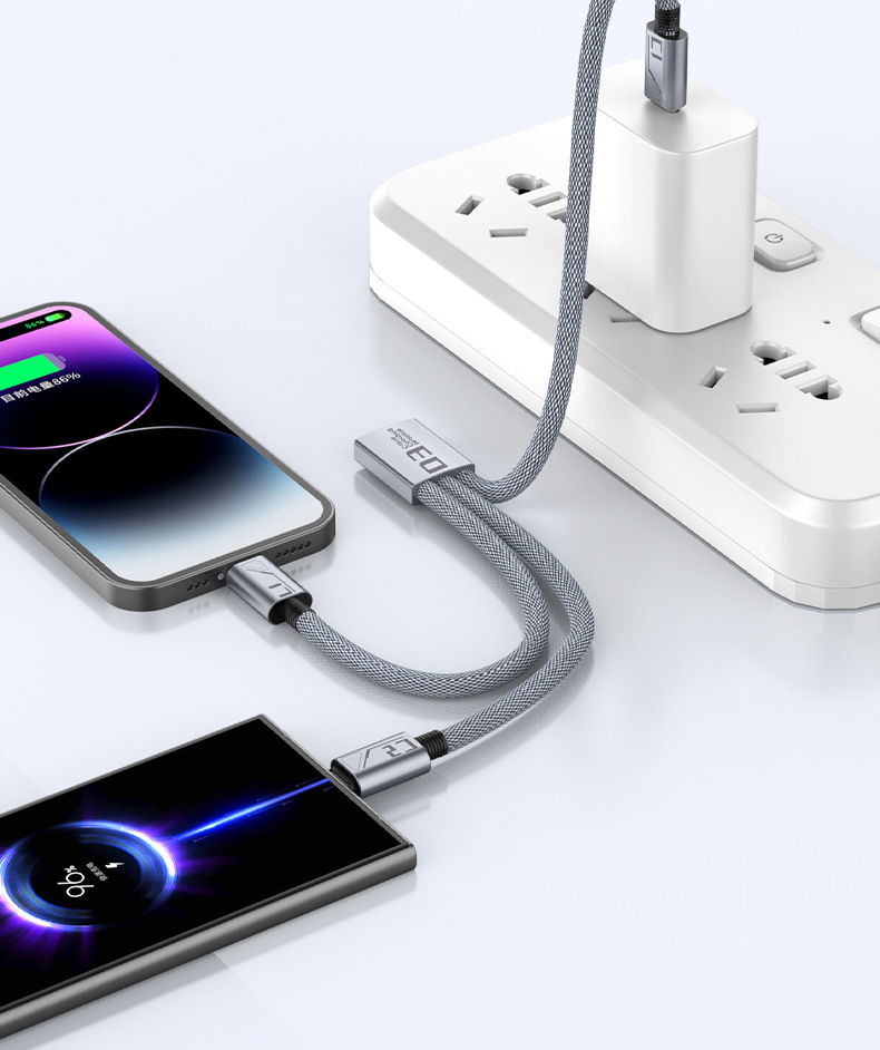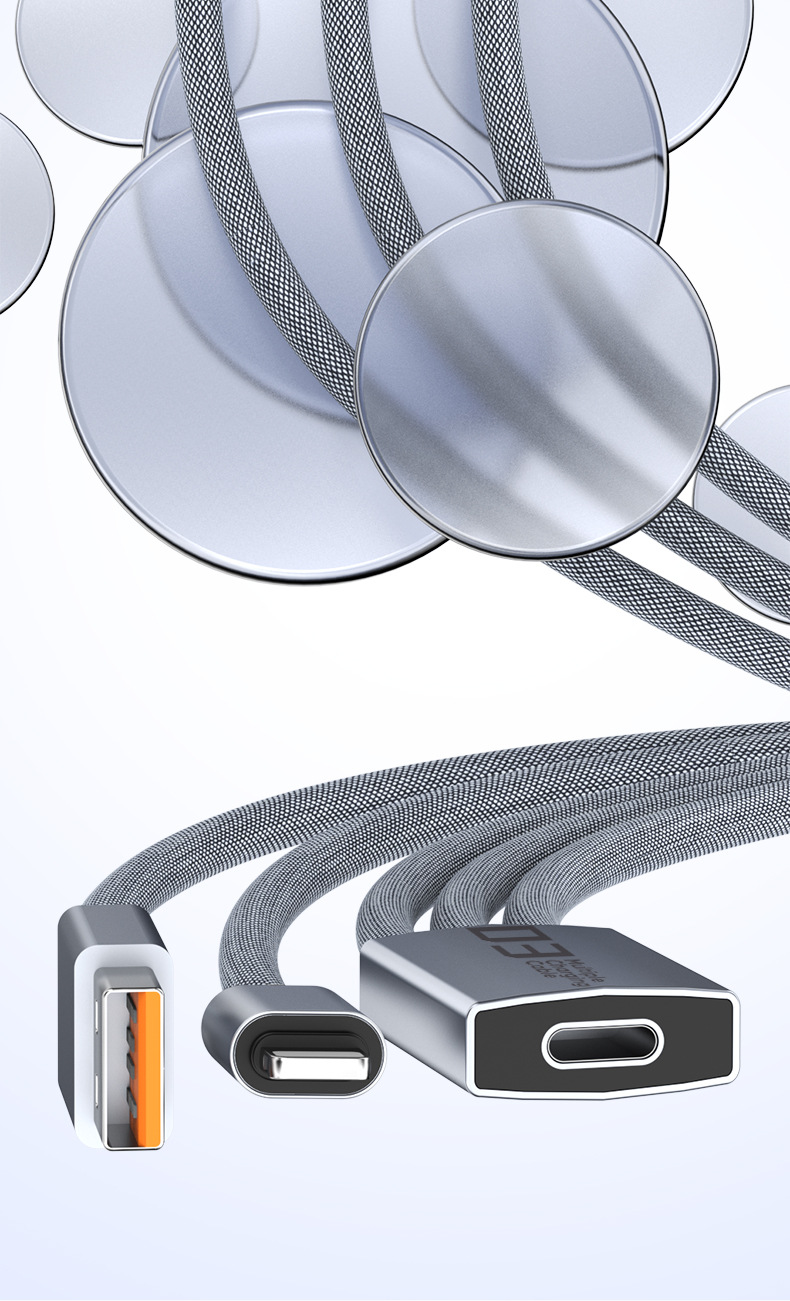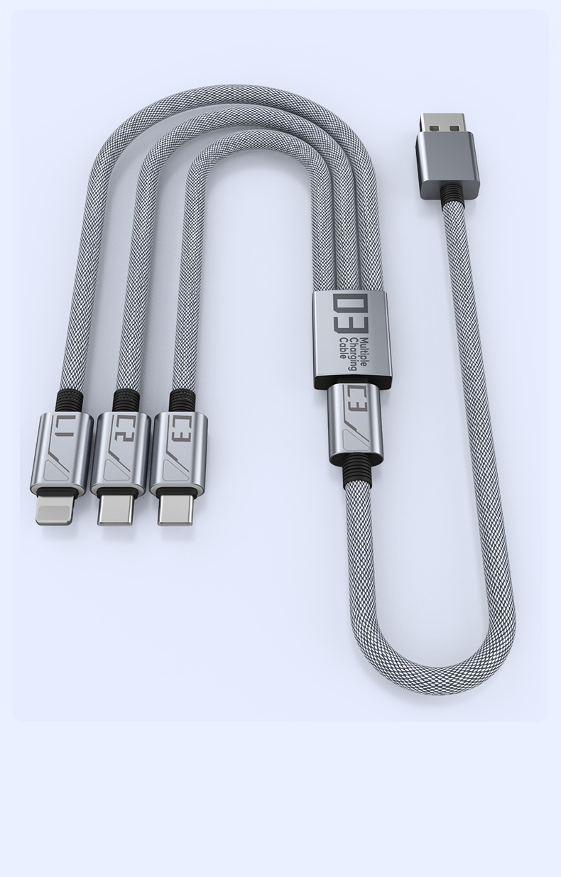 Braided Data Cable, One For Three, Super Fast Charging, One Multi-Purpose Fast Charging, Detachable, Suitable For Pingguo, Huawei, Android