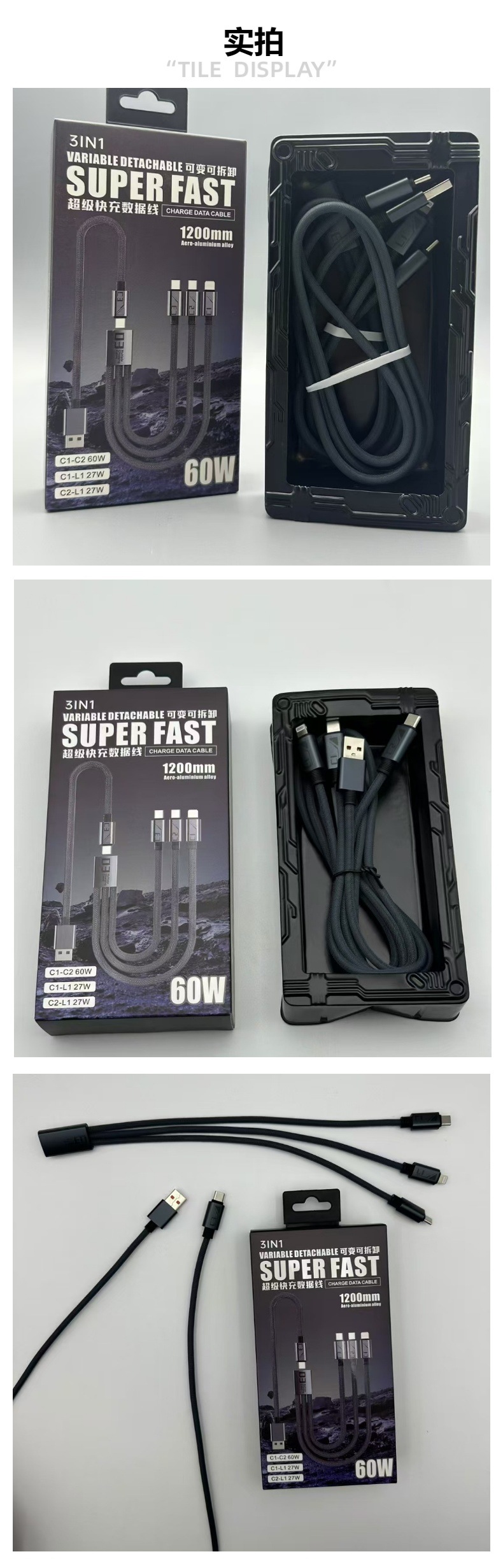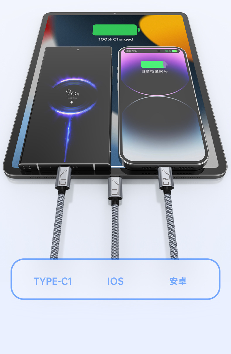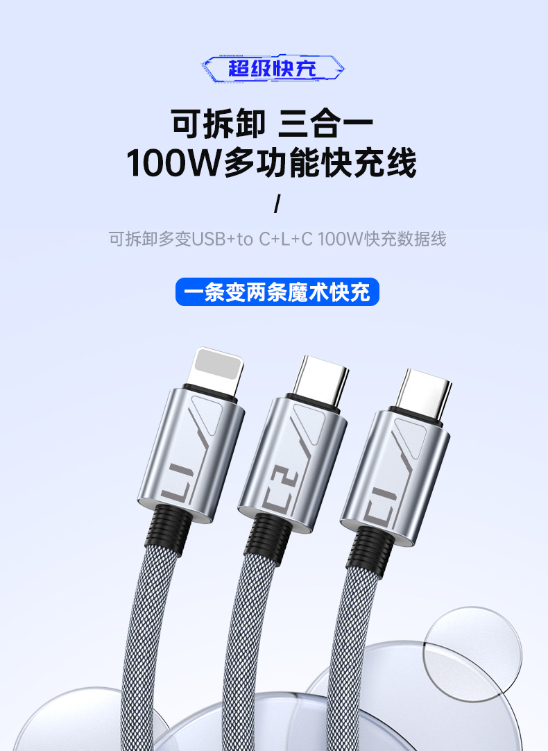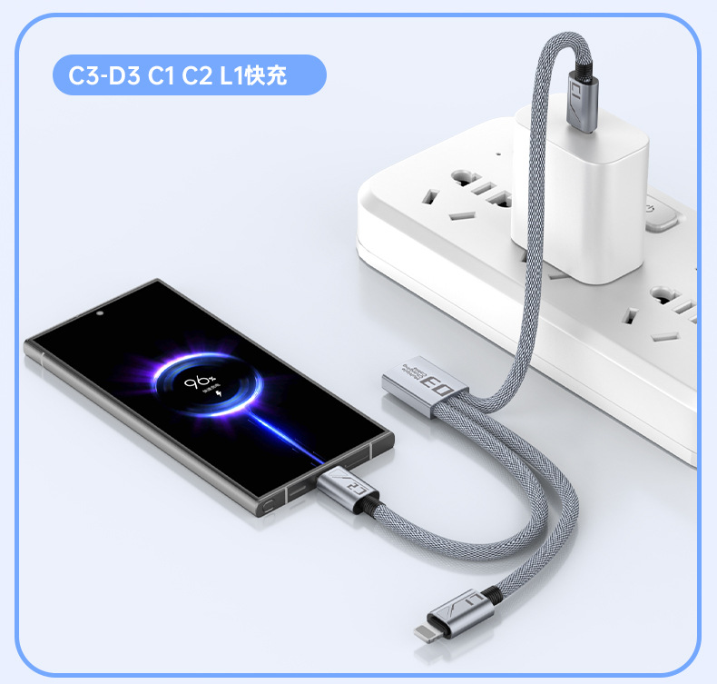 Braided Data Cable, One For Three, Super Fast Charging, One Multi-Purpose Fast Charging, Detachable, Suitable For Pingguo, Huawei, Android